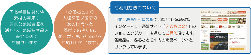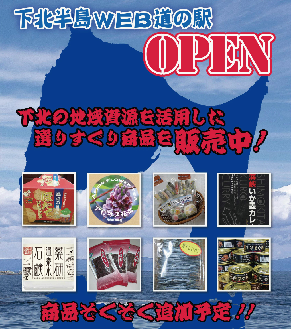 このサイトでは下北半島の地域資源の活用により開発した商品や、魅力ある隠れた地域特産品を紹介・販売し下北半島の魅力を発信しております。